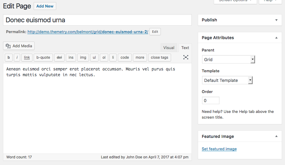 These styles will be ignored if the page is using the Testimonials template or Grid template, which we'll cover in our "demo site homepage breakdown" below.