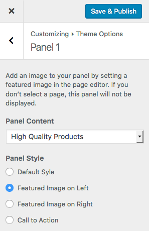 Each section pulls content from an existing page on your WordPress site. These can be set in Customize → Theme Options.