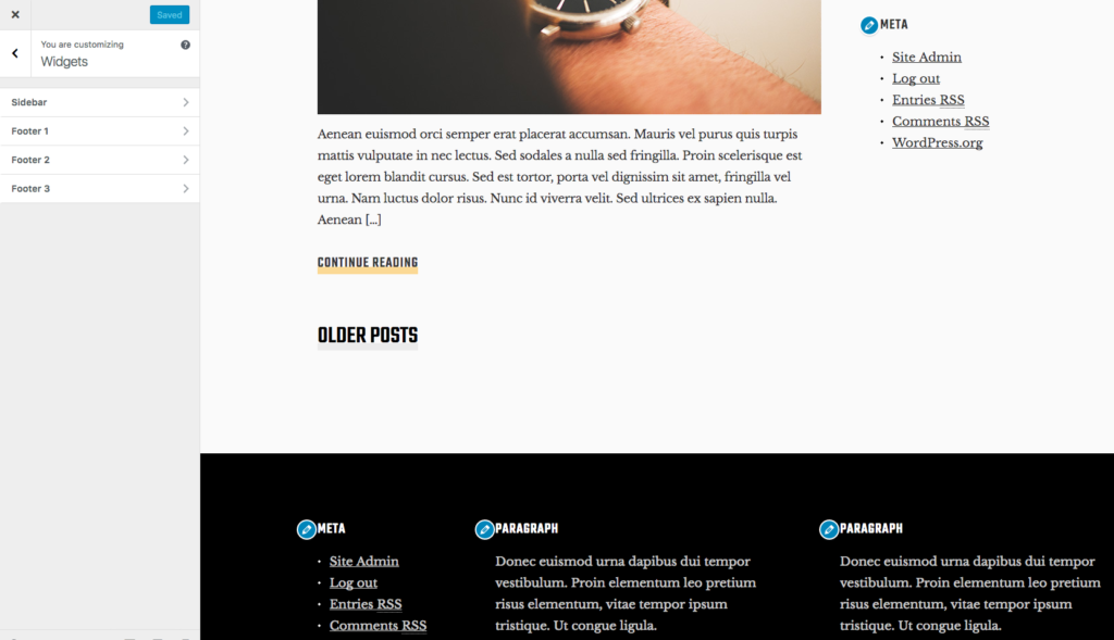 Note that the footer widgets are flexible, and if no sidebar widgets are present, a one column layout will be used.